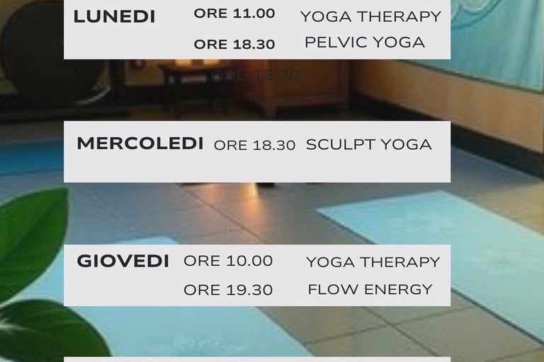 Le lezioni di gruppo sono a numero chiuso, pensate per essere supportate al meglio e svolgere la pratica Yoga in comodità.